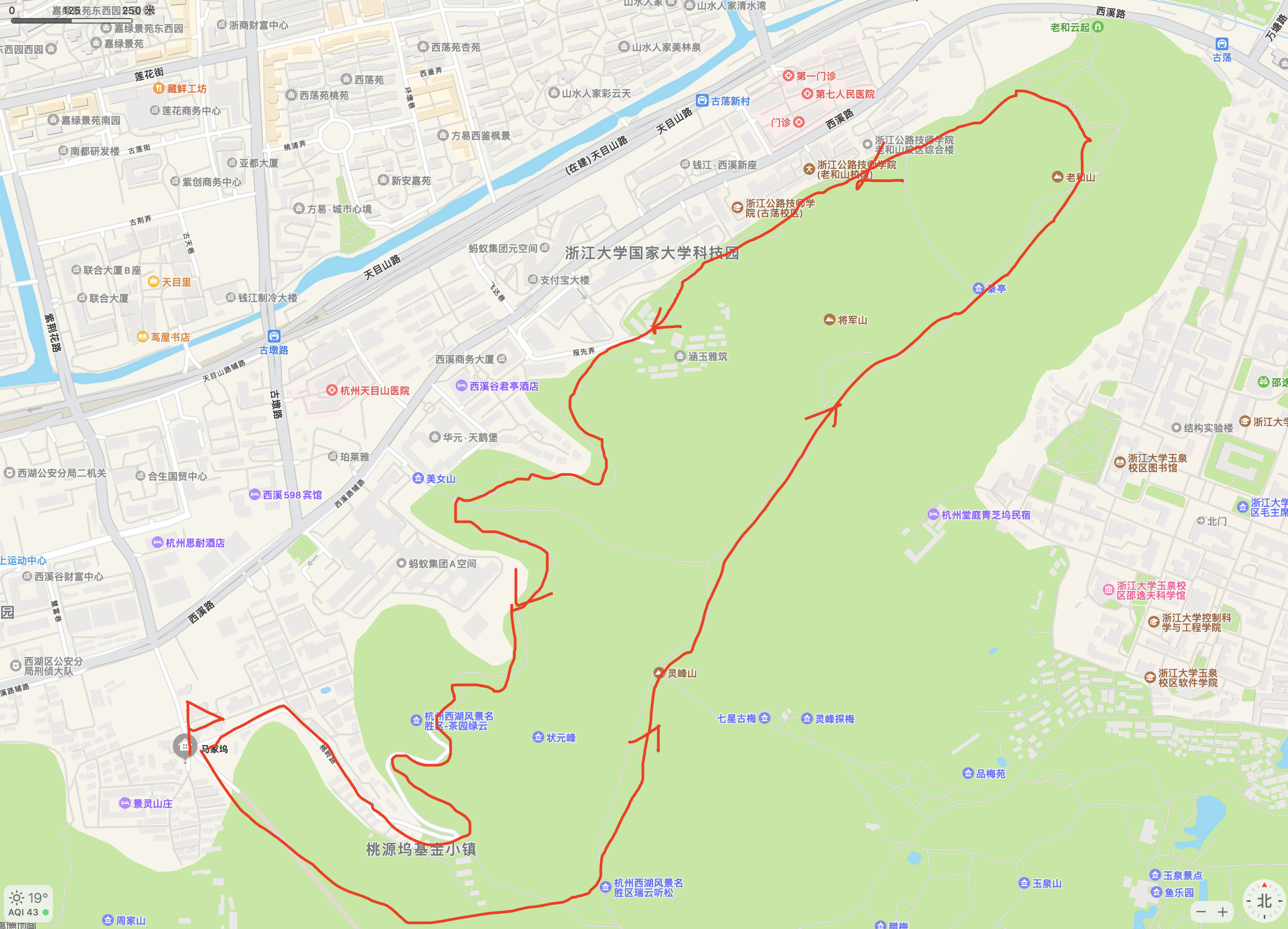 线路:汽车西站 - 马家坞 - 灵峰山 - 老和山 - 老和云起 - 西山游步道 - 报先寺 - 马家坞